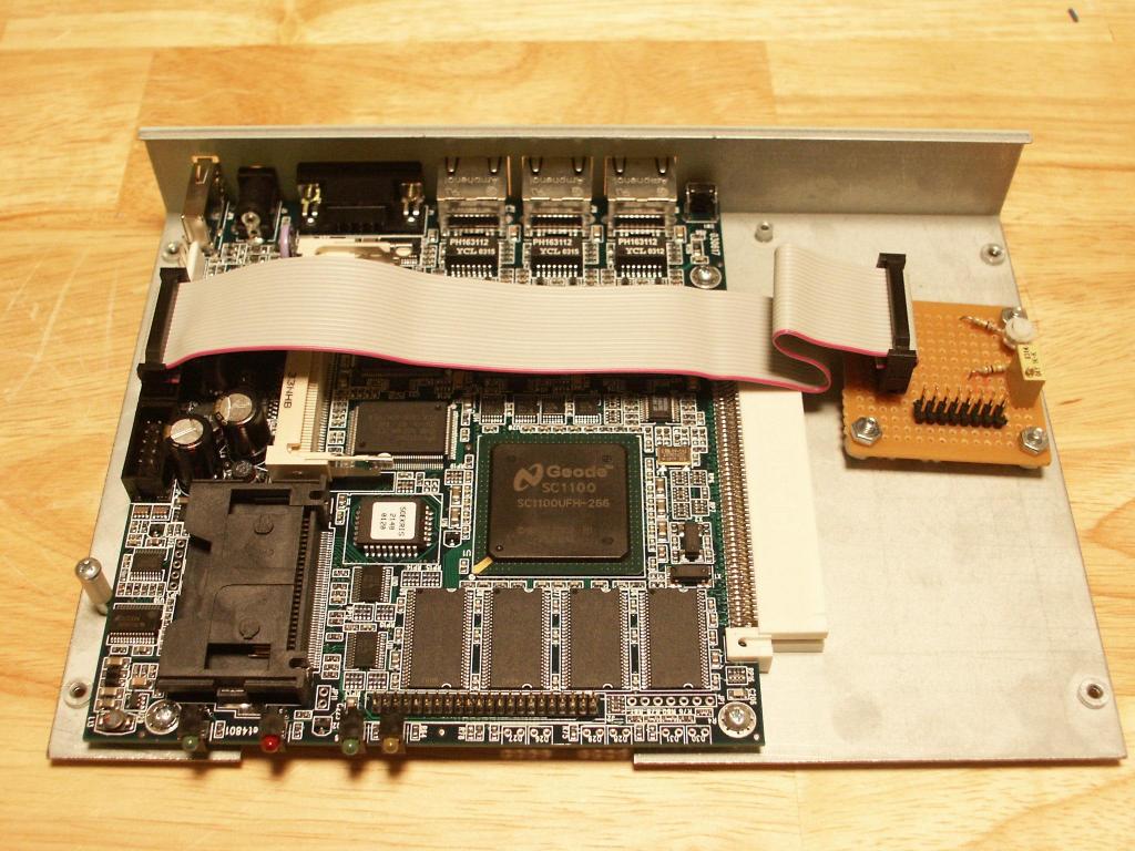 Soekris net4801 GPIOThe Soekris net4801 contains 12 GPIO pins. 7 output pins are used for the display. 5V power is drawn from net4801 power supply.